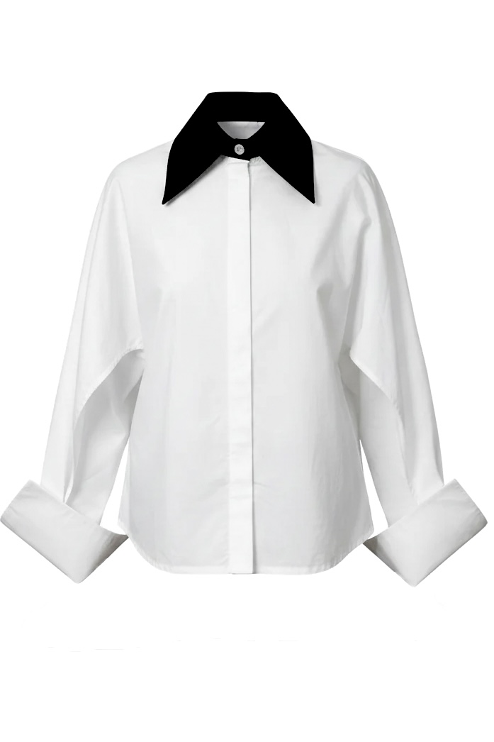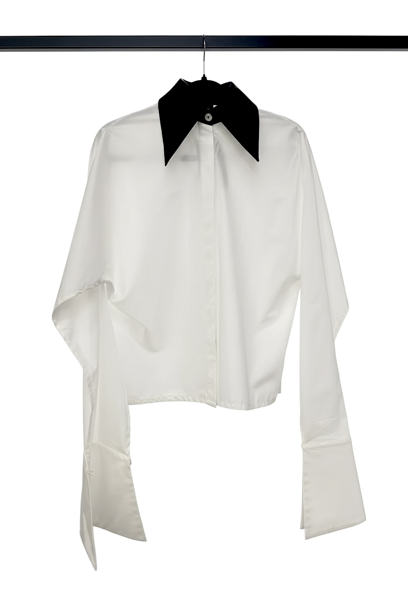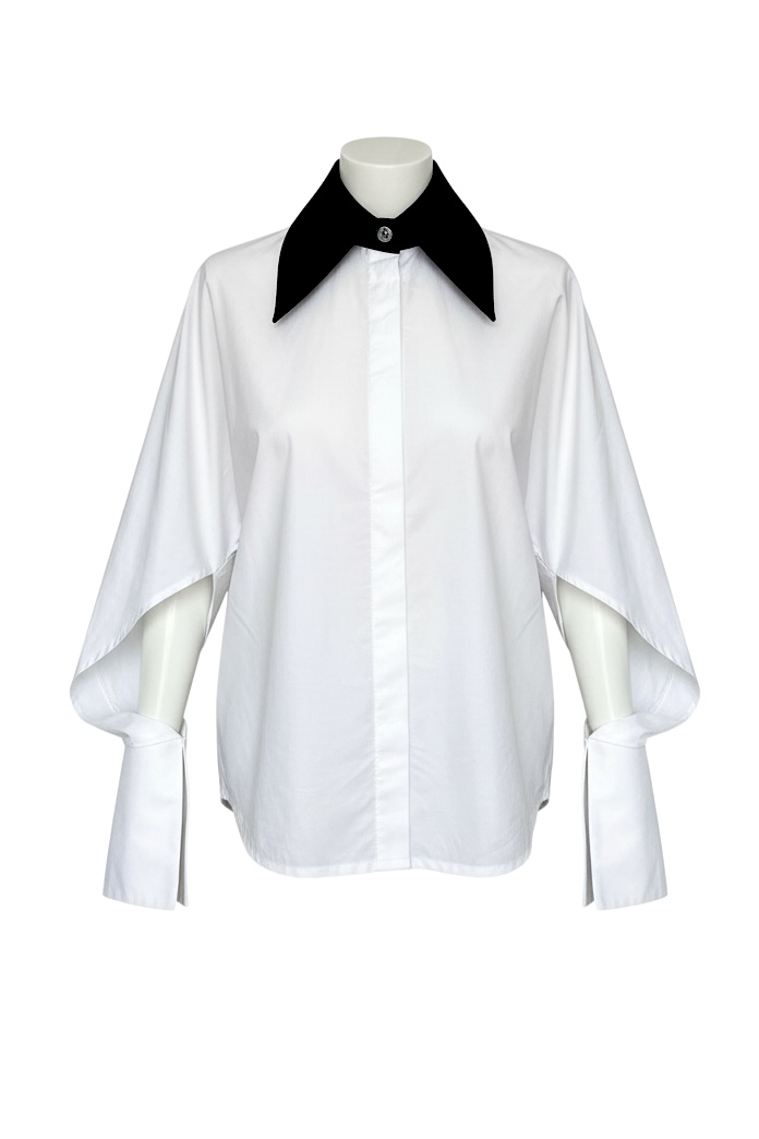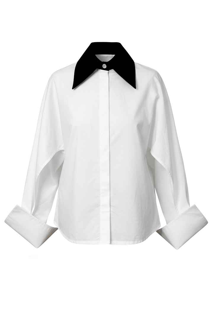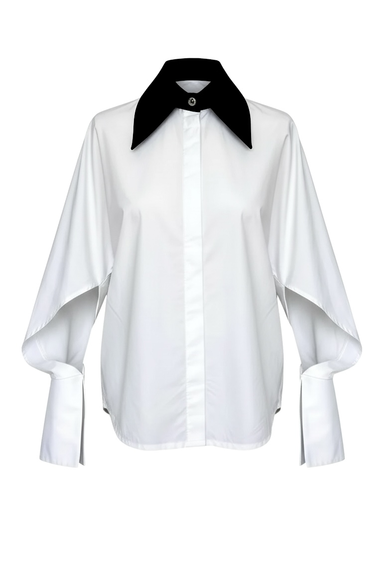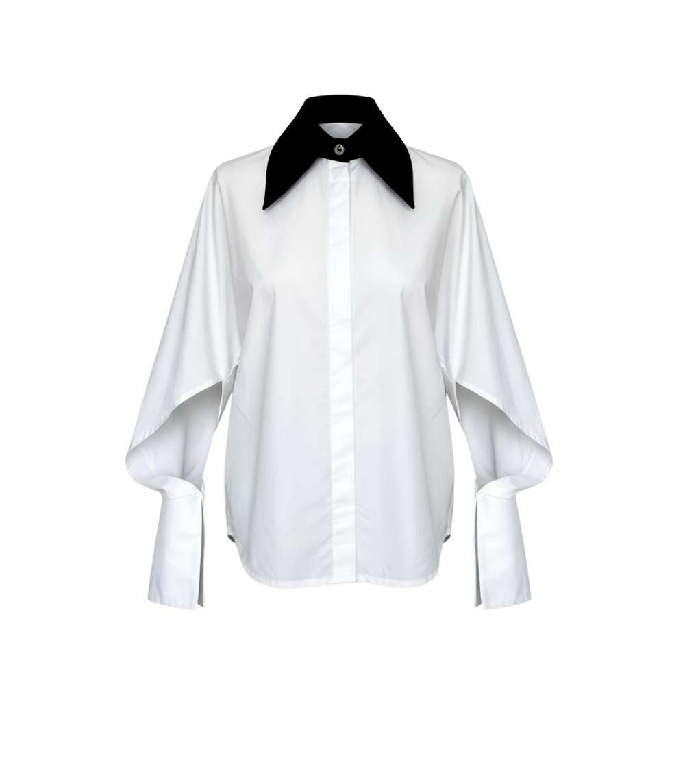 Camasa Kimono, poplin, Alb cu guler negru