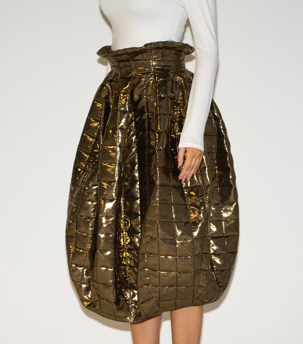 Fusta Lalea din kapitone fin cu aspect matlasat, Auriu