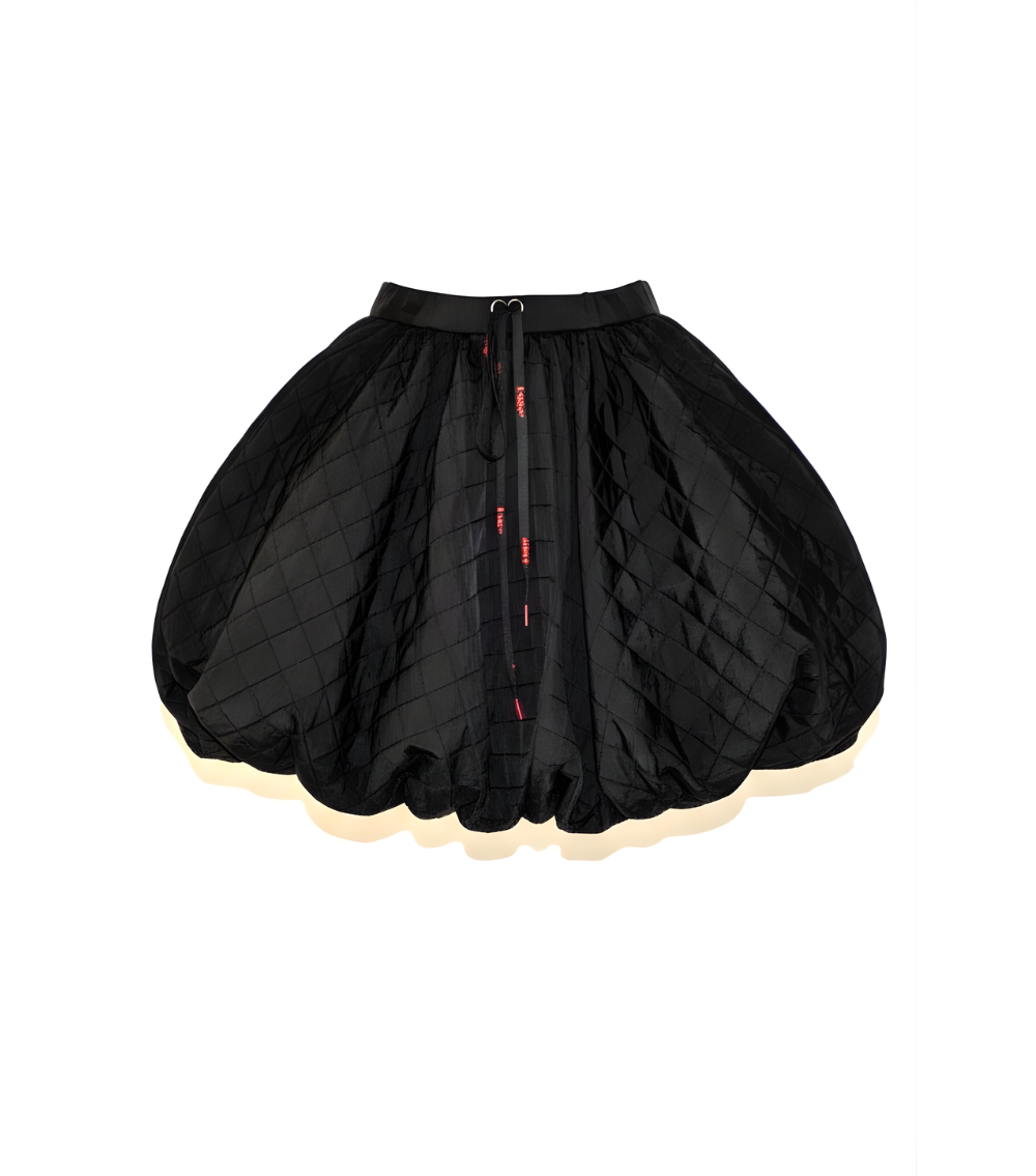 Fusta mini tip balon, din kapitone fin cu aspect matlasat si snur in talie pentru design