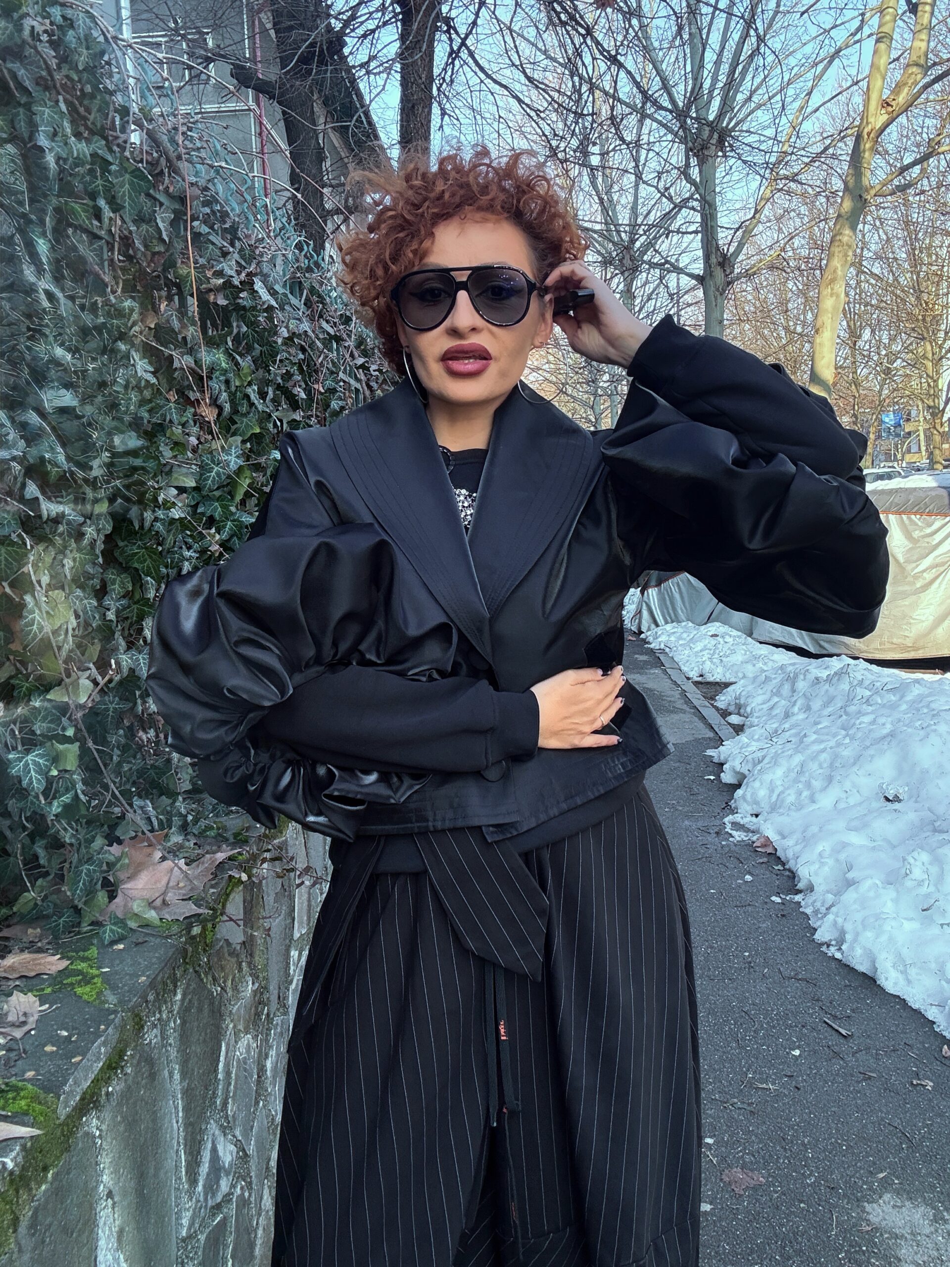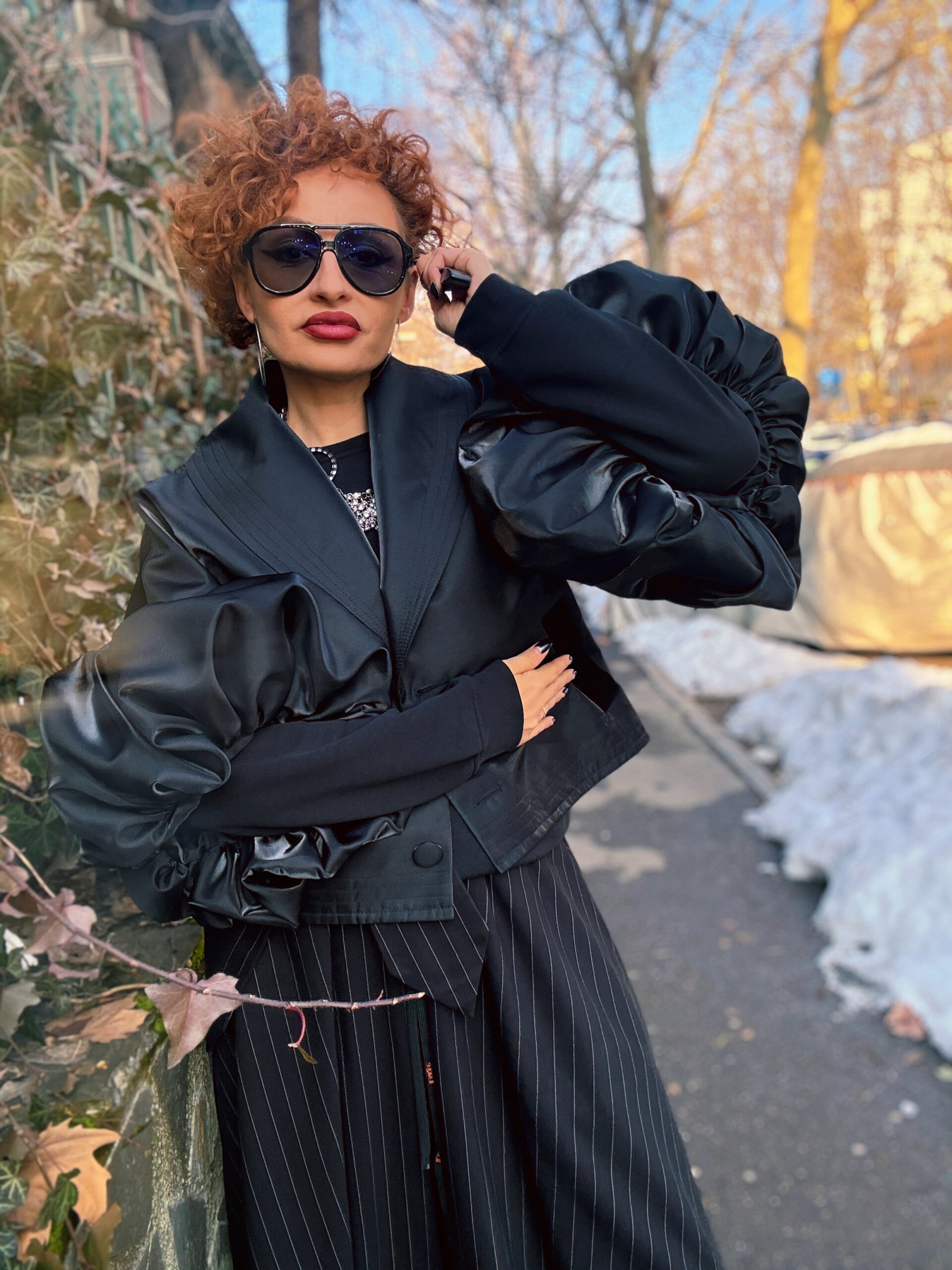 Sacou sculptural, Visiniu cu Negru