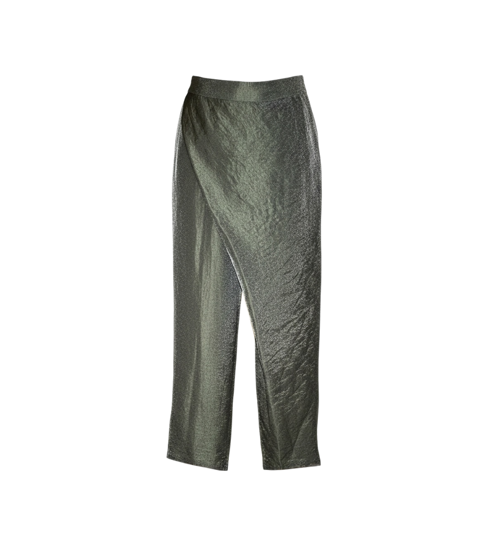 Pantalonii Chic IUnique, cu un design unic parte peste parte, sunt conceputi pentru a adauga un plus de rafinament oricarei tinute. Disponibili in variante de organza argintie si aurie sau stofa bej acesti pantaloni sunt versatili si usor de integrat in garderoba ta.